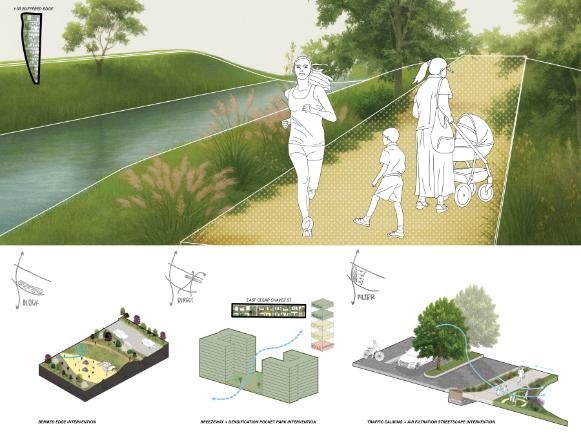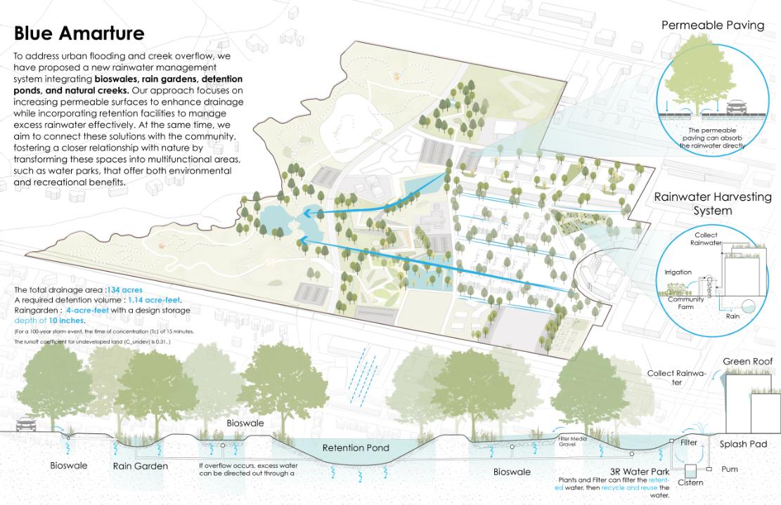 The Raíces arboretum is grounded in ecological restoration, community education, and sustainable stormwater design. By revealing San Antonio’s hidden hydrology and elevating the native ecoregion, the project creates a rooted network where biodiversity expands, knowledge develops, and the community experiences nature as an essential public resource. The overall design demonstrates how intentional ecological thinking can regenerate derelict land, strengthen regional identity, and set a strong example for climate resilient public spaces.