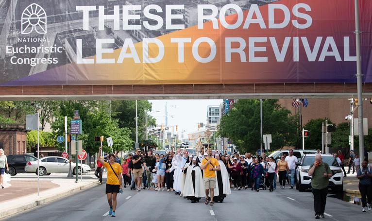 Hundreds of Galveston-Houston Catholic pilgrims journeyed to Indianapolis, joining 60,000-plus other Catholics for the 10th National Eucharistic Congress. The landmark moment for the Catholic Church in the United States was marked by powerful encounters with Jesus Christ in prayer, Sacraments, Liturgies and community. Local clergy, including Daniel Cardinal DiNardo and Auxiliary Bishop Italo Dell'Oro, CRS, and religious led the faithful contingent of pilgrims on a trip of a lifetime. ▪ SEE PAGES 9 - 12
