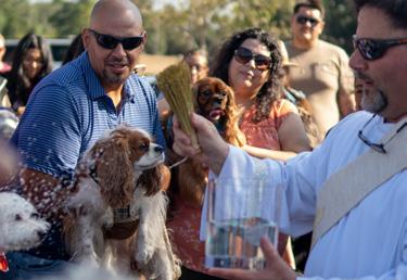 Father Jhon Florez G., pastor of Our Lady of St. John Parish in Houston, smiles before blessing pets at the parish. SEE MORE PHOTOS ON PAGE 4.