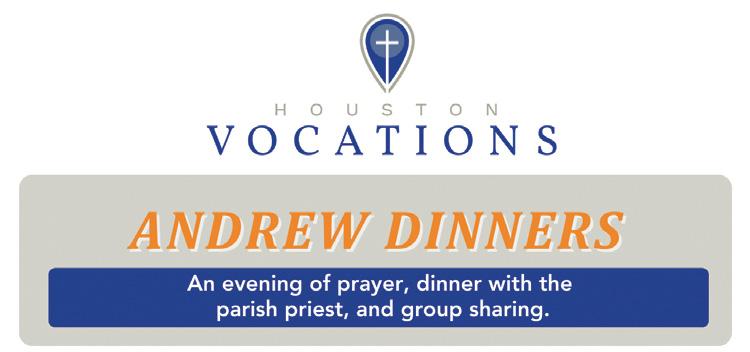 ADVENT SEAFARERS MASS, 9:30 a.m., St. Mary’s Seminary Chapel (9845 Memorial Dr., Houston). Archdiocese of Galveston-Houston Council of Catholic Women host an Advent Mass and luncheon with Daniel Cardinal DiNardo to honor, thank and promote the donations, service and works of the Seafarers Port Ministry for the Archdiocese. ghcw.org; ghaccwboard@ gmail.com.