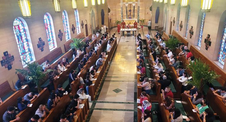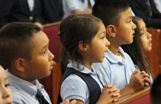 With Catholic school students, clergy, consecrated men and women religious, parishioners and lay faithful joining him in prayer above in the