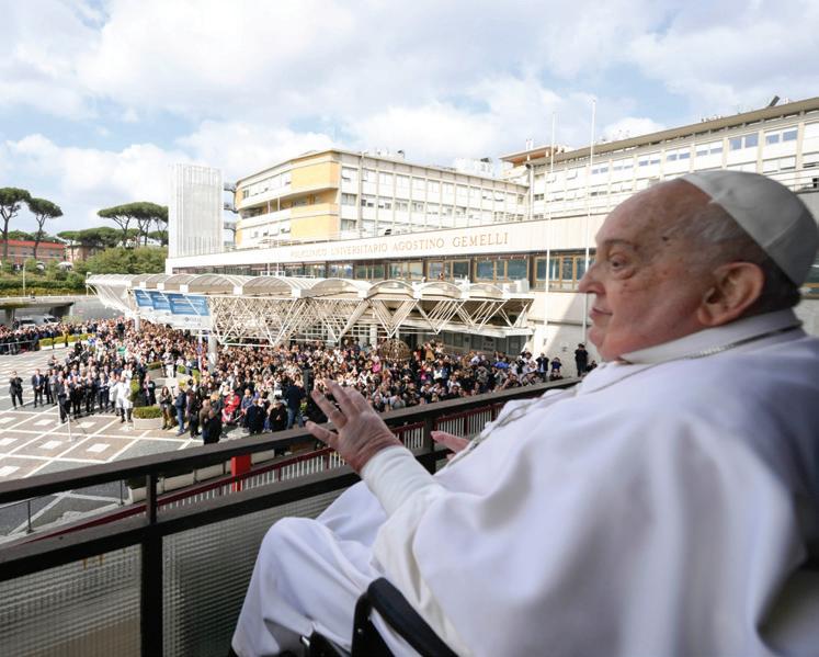 The pope continues to show improvements in his mobility and ability to speak, the press office told reporters April 1. The pope continues to receive supplemental oxygen through a nasal cannula during the day and high-flow oxygen at night when necessary. He can remove the nasal tube for “brief periods” during the day.