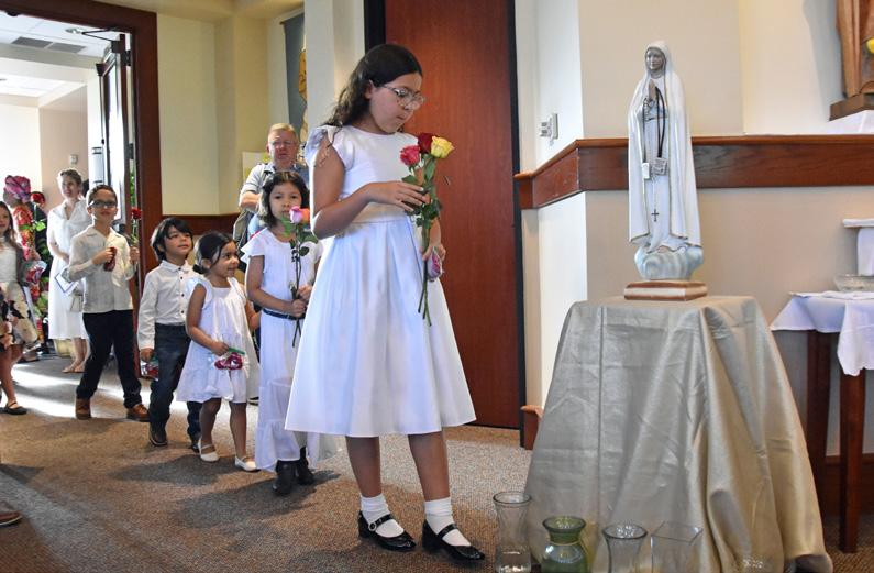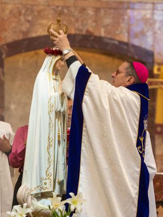 At left, Auxiliary Bishop Italo Dell’Oro, CRS, places a crown atop a statue of the Blessed Virgin Mary during a Mass for the Third Sunday fo Easter for Legion of Mary Senatus May Crowning at the Co-Cathedral of the Sacred Heart in Houston on May 4. Dozens of Legion of Mary groups from parishes around the Archdiocese attended the annual event that concluded with a special presentation of flowers to the Blessed Mother. Faithful from a diverse group of Catholics reflecting a wide breadth of the ethnic groups of the Archdiocese, with members from various Asian, African and Central/Latin American countries, attended the annual gathering.
