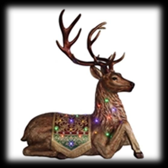 34” LED Candy Cane Merry Christmas Sign 16 LED Lights 48” Merry Christmas Signage 68” Santa Mailbox 80” Christmas Lightpost 31”H Fiber Optic Lighted Presents in Sleigh, includes Metal Stand 890 Fiber Optic Lights Santa Sleigh 47” LED Lit Sitting Deer 30 LED Lights 60” LED Lit Standing Deer 30 LED Lights