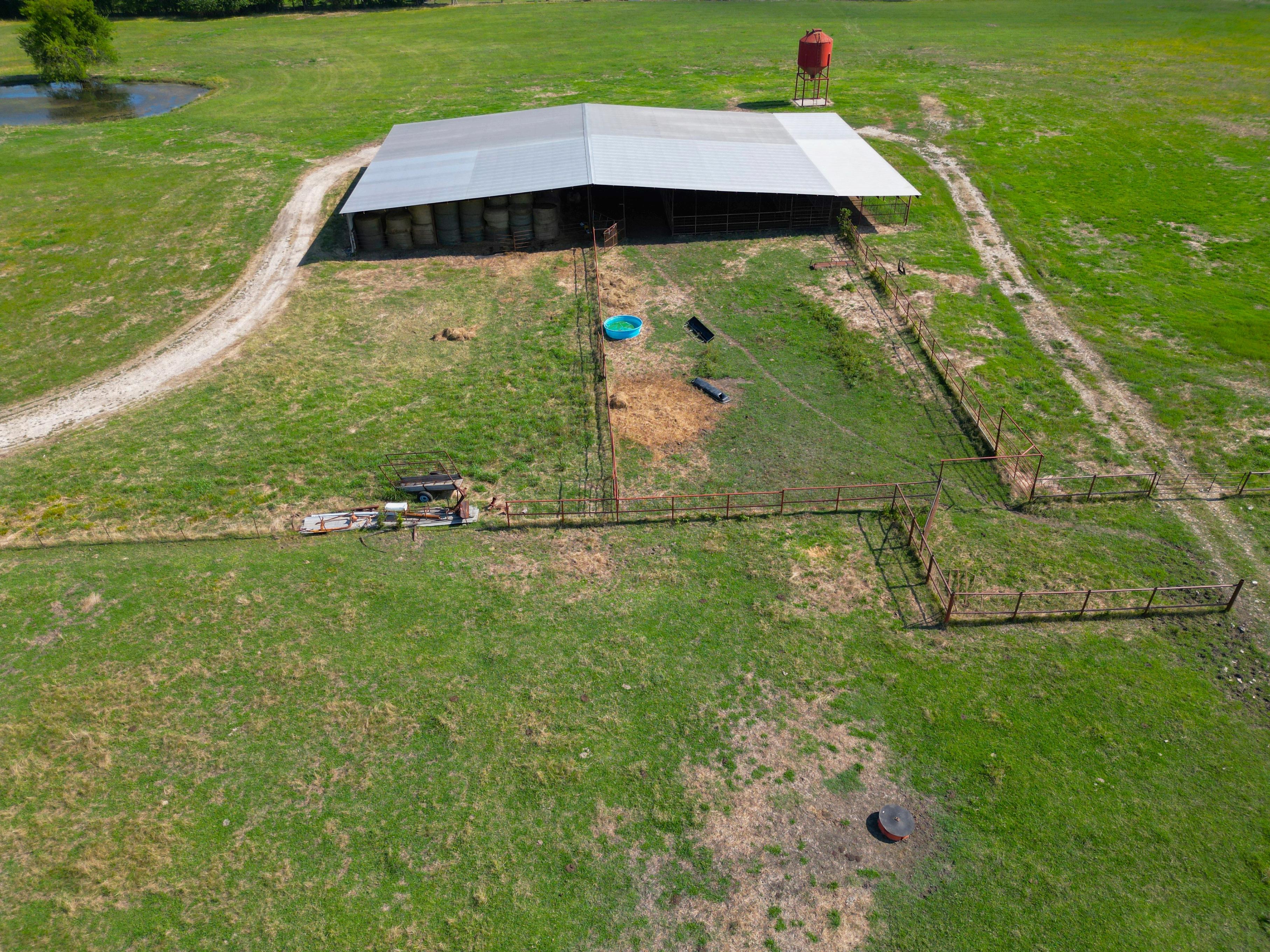 60’x50’thismetalbarnhasdividerstoallowmultiplestorageandworkareasinside.Thereisalsoadeepcovered parkingareaandoverhanginfront.Theentirebarnisonaconcreteslabandislocatedtowardthebackofthe property.Thereiswaterandelectrifytothebarn.