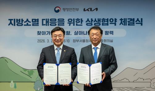 27일 오후 국립창원대학교 대학본부에서 박민원(왼쪽) 총장과 LG전자 이재성 ES본부장이 HVAC 연구센터 건립 기부채납 약정서를 체결한 후 기 념촬영하고 있다.(사진 제공=국립창원대) 0226.03.27.