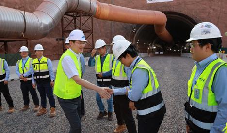 이재용 삼성전자 회장이 1일(현지시간) 사우디아라비아 서북부 타북주(州)에서 삼성물산이 참여하는 네옴(NEOM) 신도시의 지하 터널 공 사 현장을 점검하고 있다. (사진 제공=삼성전자) 2023.10.02.