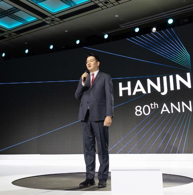 경영철학을 이어받아 그 룹의 100년 기업 도약을 위한 ‘그룹 비전 2045’를 선포하며 뉴 리더십을 공고히 했 다. 코로나 위기 속에서 경영권 위협을 극복하고 ‘메가 캐리어’ 완성을 눈앞에 둔 조원 태 회장은 대한항공-아시아나 통합 시너지를 극대화하고 70조 원 대미 투자 계획을