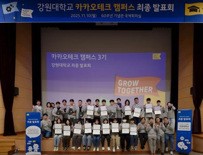 화하는 ‘카카오 AI 사장님 클래스’, 대 학생·사회혁신가·카카오 개발자가 함 께 지역 문제를 해결하는 ‘테크포임팩 트 캠퍼스’ 등 기술 기반 인재 양성과 사회공헌 활동을 지속하고 있다.
