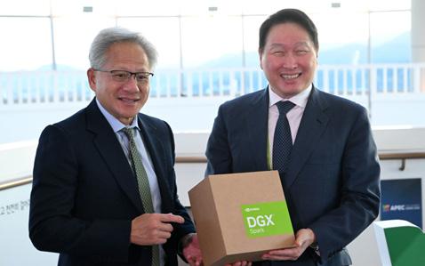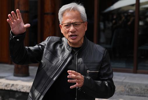 젠슨 황 엔비디아 최고경영자(CEO)가 16일(현지 시간) 중국 베이징에서 열린 제3회 중국 국제 공급망 촉진 박람회(CISCE) 참석 후 만다린 오 리엔탈 첸먼 호텔에서 기자회견하고 있다. 2025.07.16.
