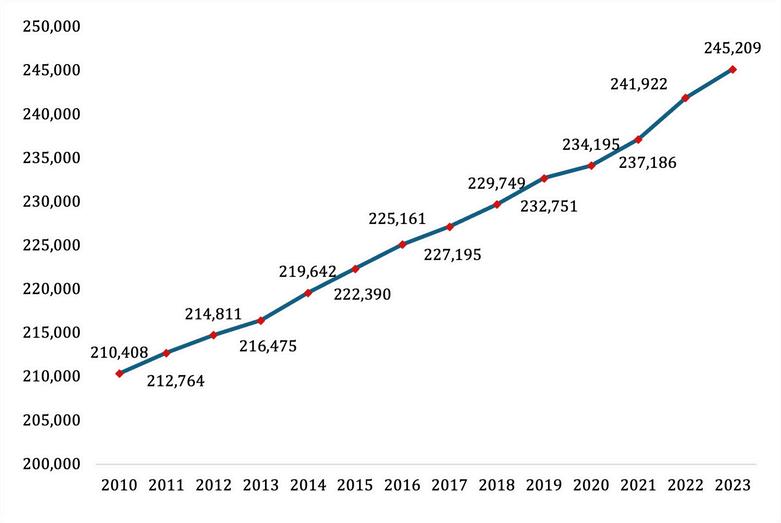 In 2023, the Tyler MSA’s population surpassed 245,000, with a median age that is one year younger than the national average.