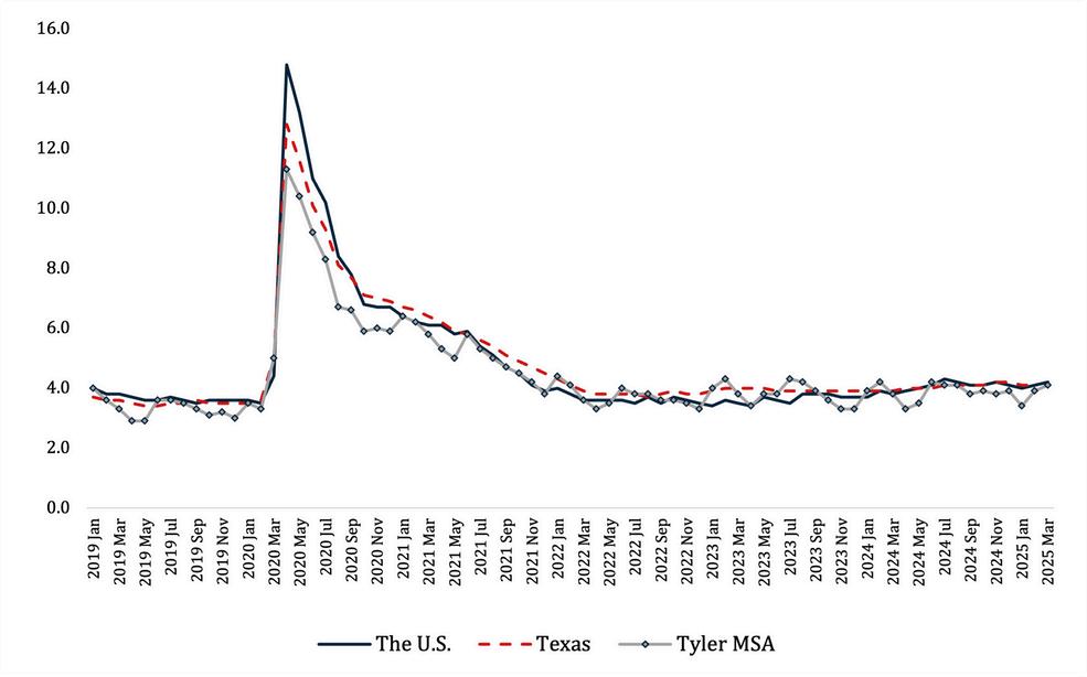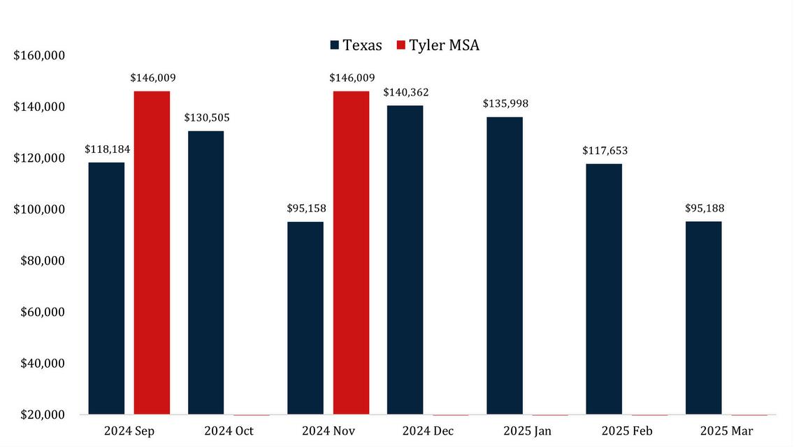 Hotel tax revenue in Tyler held steady at $3.4 million in 2024, while monthly sales tax collections reached a record high of $6 million in early 2025.