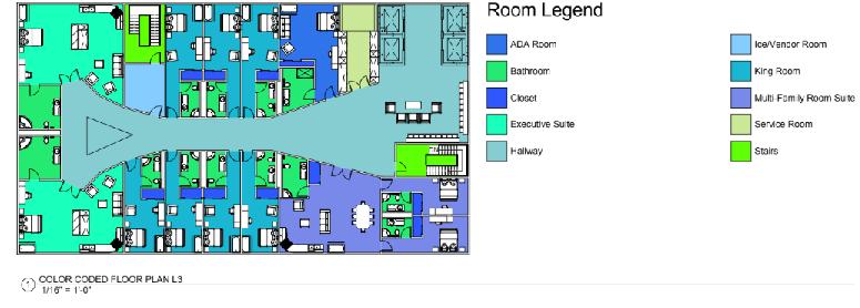 THE GOAL IN THIS CHICAGO HOTEL PROjECT IS TO DESIGN AND DEVELOPE A HOTEL THAT IS 13 STORIES HIGH WHICH INCLUDES DOUBLE, kING, MULTI-fAMILY, ExECUTIVE, AND ADA SUITES/ROOMS, AND HAS A MODERN ARCHITECTURAL DESIGN. BEING LOCATED AT 546 EAST NORTH WATER STREET, WHICH WAS THE fORMER CHICAGO SPIRE SITE, USING THE GIVEN 135’ x 75’ RECTANGULAR DESIGN. THIS HOTEL IS OPEN TO ALL OCCUPANTS, AND ALLOW A COMfORTABLE STAY. SURROUNDING THE SITE IS THE CHICAGO RIVER AND A CANAL. THIS PROjECT WAS PLANNED AS A PARTNER PROjECT AS ONE PARTNER DOES THE INTERIOR Of THE HOTEL, WHILE THE OTHER PARTNER DOES THE ExTERIOR. I WAS TASkED TO DO THE INTERIOR/CORE Of THE HOTEL ALONG WITH THE TOP fLOOR Of THE HOTEL. MY PARTNER DESIGNED THE ExTERIOR Of THE HOTEL AND THE fIRST fLOOR/LOBBY AREA. I DREW OUT SkETCHES Of THE DIffERENT fLOORS INSIDE THE HOTEL. THEN WENT INTO REVIT TO DEVELOPE THEM fURTHER INTO VARIOUS fLOOR PLANS AND RENDERINGS.