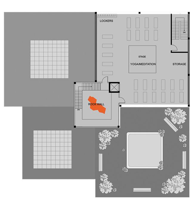 Located in downtown Lawrence, Kansas on the corner of 11th and Massachusetts st, The Climb Wellness Center brings an unique attraction to Lawrence. My partner, Kaitlin Hoines, and I designed this new wellness center to be a new attraction to this Throughout this historic district, there are many shops and landmarks, but there’s nothing like The Climb. The wellness center contains many unique attributes, one being the hydrotherapy pools. The highlight of this building is a vibrant orange giant rock climbing wall, located in the center of the building. This climbing wall is constructed to go from the street level to the top floor. The size of the building allows it to blend in with the surrounding buildings while not being overwhelming. The Climb Wellness Center allow the downtown historic district of Lawrence, Kansas to be complete.
