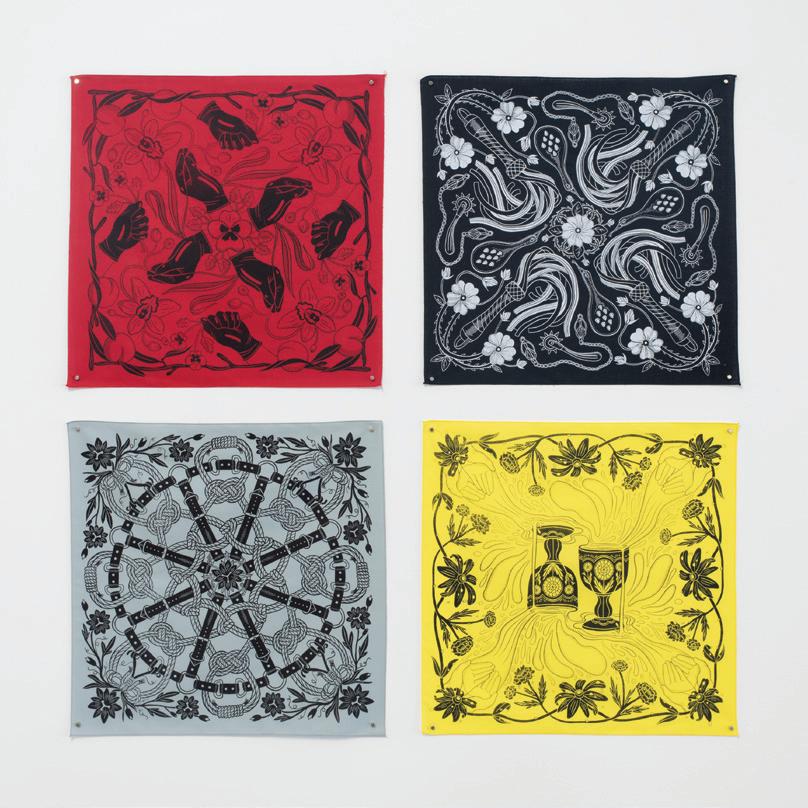 Scails’s work simultaneously offers restorative solutions while complicating material and treatment. Stack is a pyramid-shaped sculpture inspired by militaries’ wartime practice of airdropping equipment. These drops contain dual possibilities: the matter inside can be used to adhere to prevailing systems of power, or to trouble the systems at play, depending on the contents and the recipient. While airdrops can deliver war supplies, they can also offer aid to innocent civilians. Scails’s Stack reconstitutes Kevlar, a fabric used in bulletproof vests for the protection of those in power, to create a package symbolically filled with survival supplies.