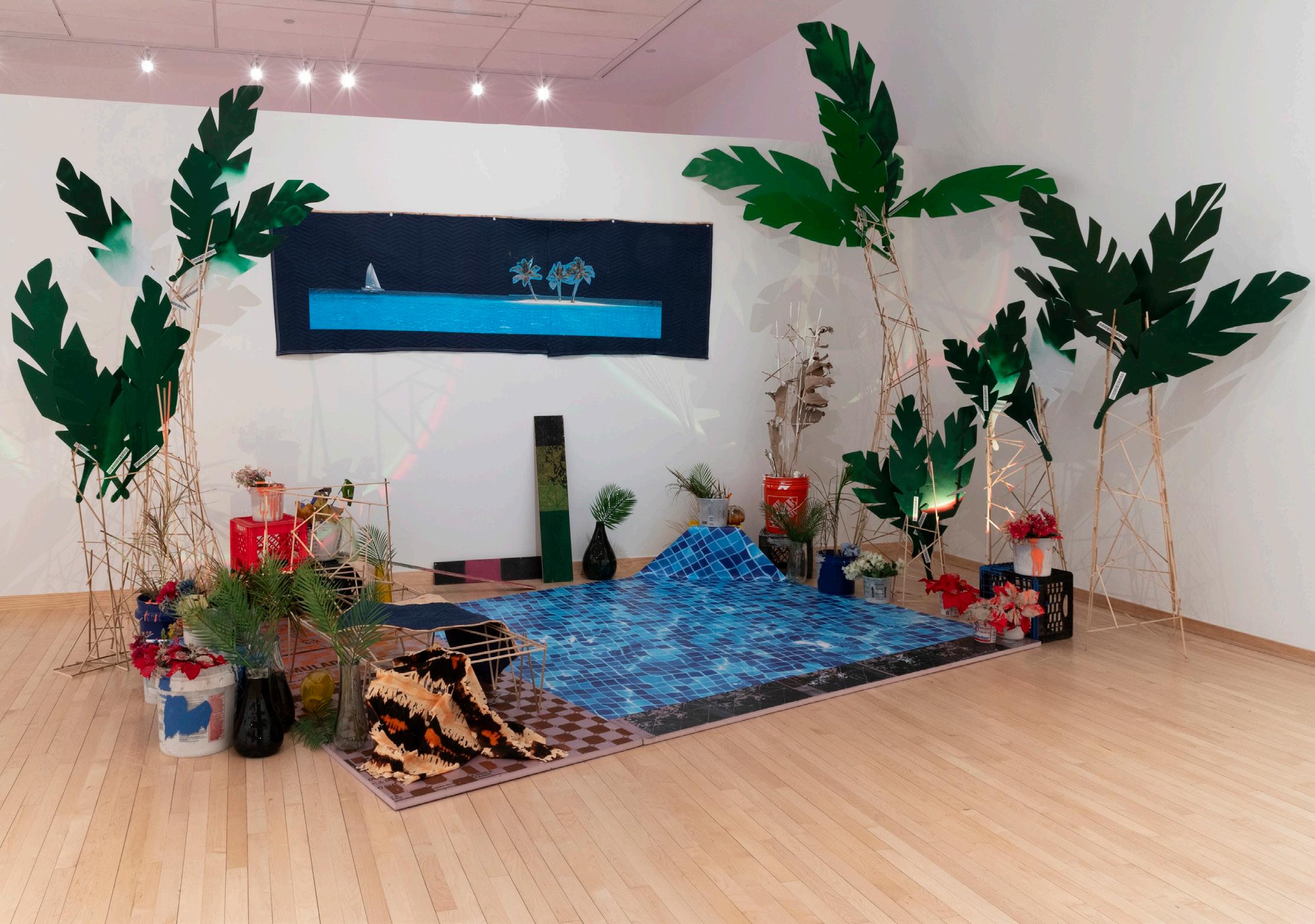 Many of the artists use materials to bring place and history directly into the gallery: soil and rocks, industrial tarps, cotton, and recycled glass. Some draw on figural imagery to evoke and confound identities. Still others turn to playful explorations that embrace humor to create new symbols of joy. Each of these remarkable artists demonstrates the transformative potential for art to inspire connection, encourage reflection, and shift perspectives.