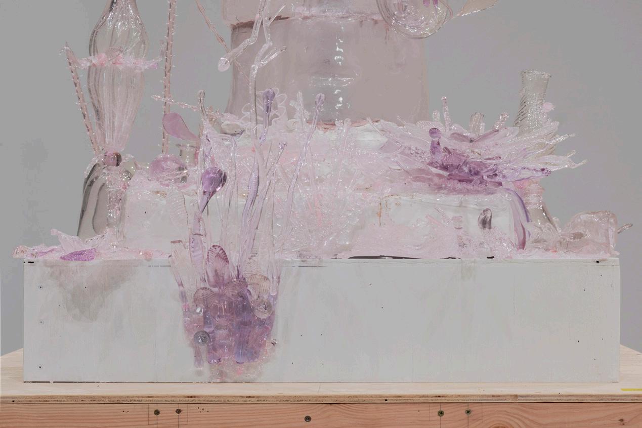 Hagiladi's work is a hopeful plea for peace and reconciliation through the lens of personal restoration and the push and pull of past and present, absence and presence, and desire and longing. She fills the gallery with glass branches and fused glass panels that panoramically reveal a fissured desert. Finally, in conversation with the still glass sculptures, a video piece depicts the artist walking across the dry earth. Her bare feet walking across the dry and audibly crunching desert represent sedulous progress, embodying a hopeful persistence.