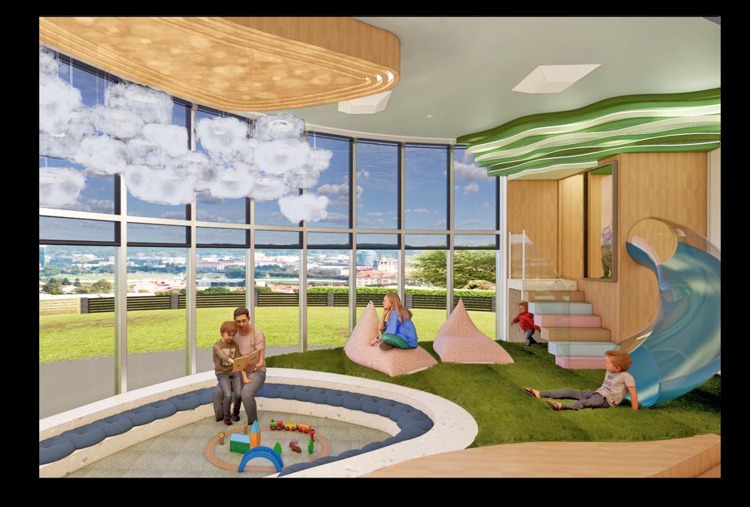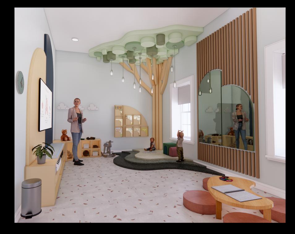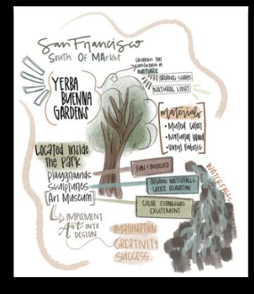 SOMAfeaturesdesignelementsfromtheYerbaBuena Gardens.Thecolorschemeispulledfromgreeneryand accentsofcolorfoundinthegardens.Archedopeningsin SOMAarederivedfromtheorganicsculpturesfoundinthe YerbaBuenaGardens.Theyexemplifyharmonyandcreatea welcomingandrelaxingenvironmentforthevisitingadultsand children.Mirrorsareusedintherapyroomstohelpchildren improvespeechskills.Wayfindingpathsthroughoutthespace areinspiredbytheMartinLutherKingfountainandare createdusingfloormaterials.SOMAwillincludeartworkthat isinfluencedbytheartmuseumsintheYerbaGardens.Childsizedfurnitureanddesignelementsarerequirementfor therapyroomsandfamilyrestrooms.Treesandcloudsare twodesigninfluencesinspiredbythenaturalelementsofthe YerbaBuenaGardens.Theseelements,seeninthetherapy rooms,enrichmentarea,andlobbyrepresentplayfulnessand growthwithinchildren.