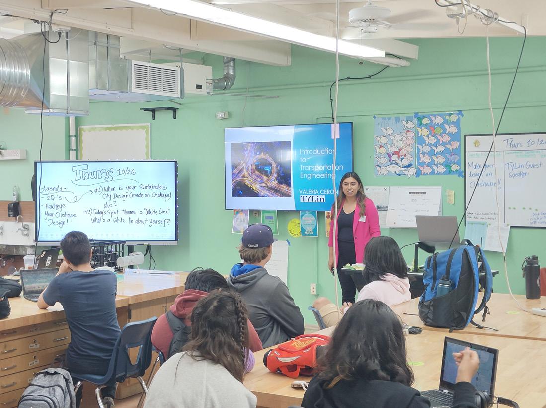 In Chicago, TYLin delivers “lunch and learn” sessions at Gwendolyn Brooks College Preparatory Academy that regularly attract 30 or more students. The program includes a two-week initiative where bridge engineers provide hands-on experiences in the classroom. During their junior and senior years, students can apply for a sixweek internship in our Chicago office to be immersed in each of the firm’s infrastructure sectors. Learn more.