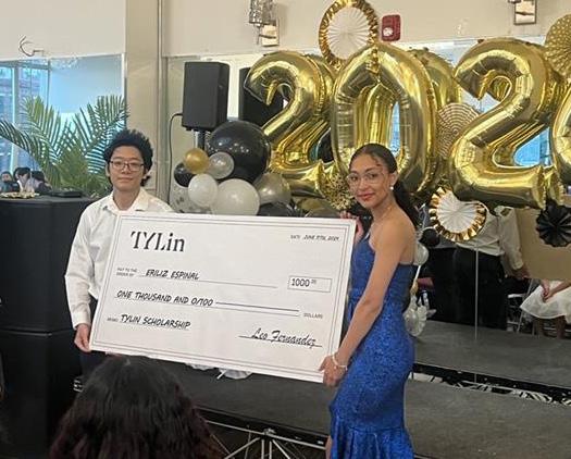 TYLin honored graduating senior Eriliz Espinal (right) with a USD 1,000 scholarship. Eriliz plans to study mechanical engineering at the City College of New York.