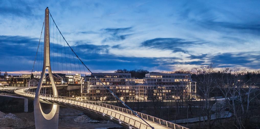 The 75-foot single-span Grist Mill Bridge features a firstof-its-kind superstructure using cutting-edge composite girder technology. The five fiber-reinforced polymer (FRP) composite girders, which will significantly reduce maintenance costs, are expected to ensure a useful life of 100 years.