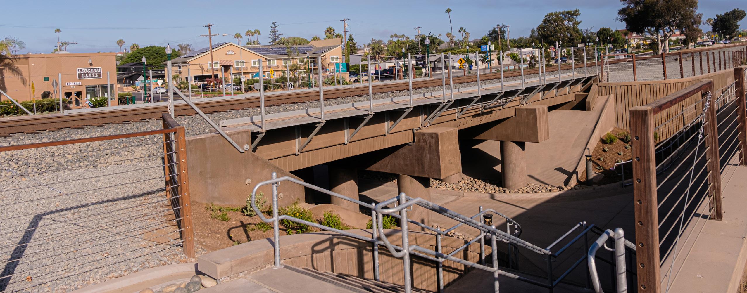 The new undercrossing is the first safe and legal pedestrian and bicycle crossing of the North County Transit District railroad tracks along this 2.5-mile stretch between Leucadia Boulevard and Encinitas Boulevard. It connects residents on the west to the local elementary school across the street and residents on the east to businesses and the beach within walking distance to the west.