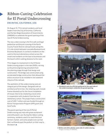 ENCINITAS, CALIFORNIA, USAOn August 14, TYLin joined residents and local leaders from the City of Encinitas, California, and the San Diego Association of Governments (SANDAG) to celebrate the grand opening of the new El Portal Undercrossing.