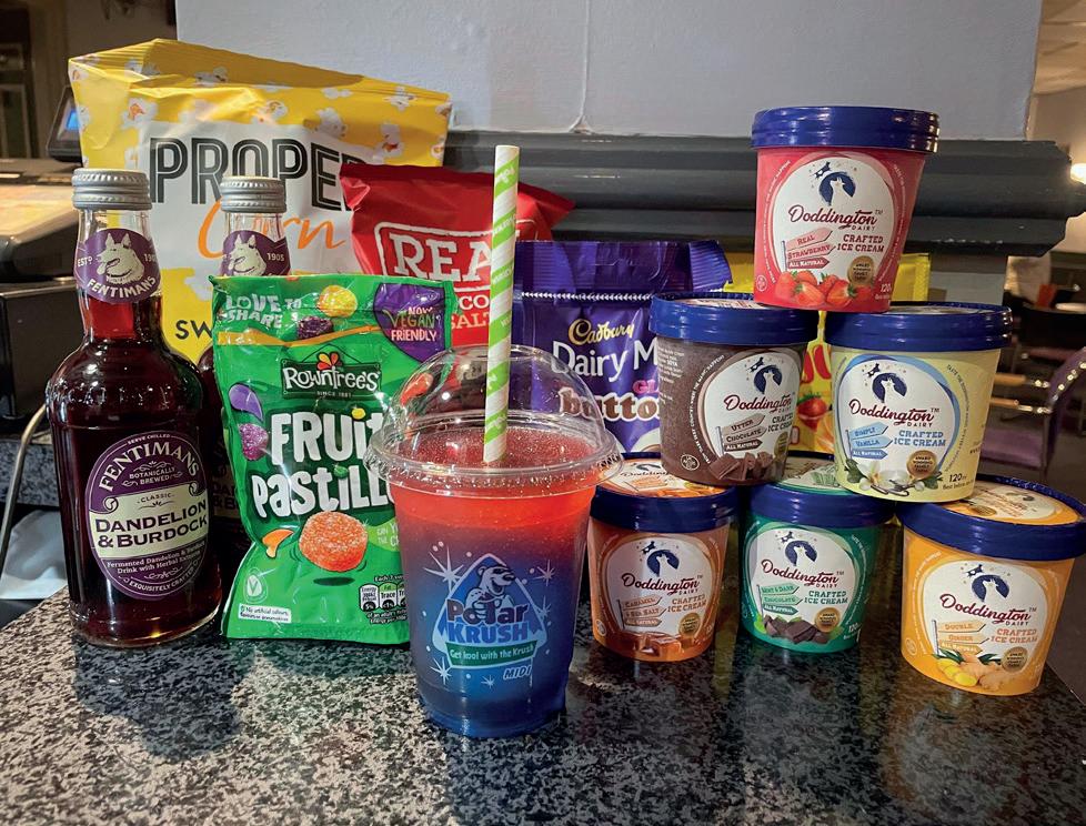 Alcoholic, soft and hot drinks. Plus locally sourced ice cream in a variety of flavours, popcorn, sweets, chocolate, crisps & more are all available to buy with cash or card.