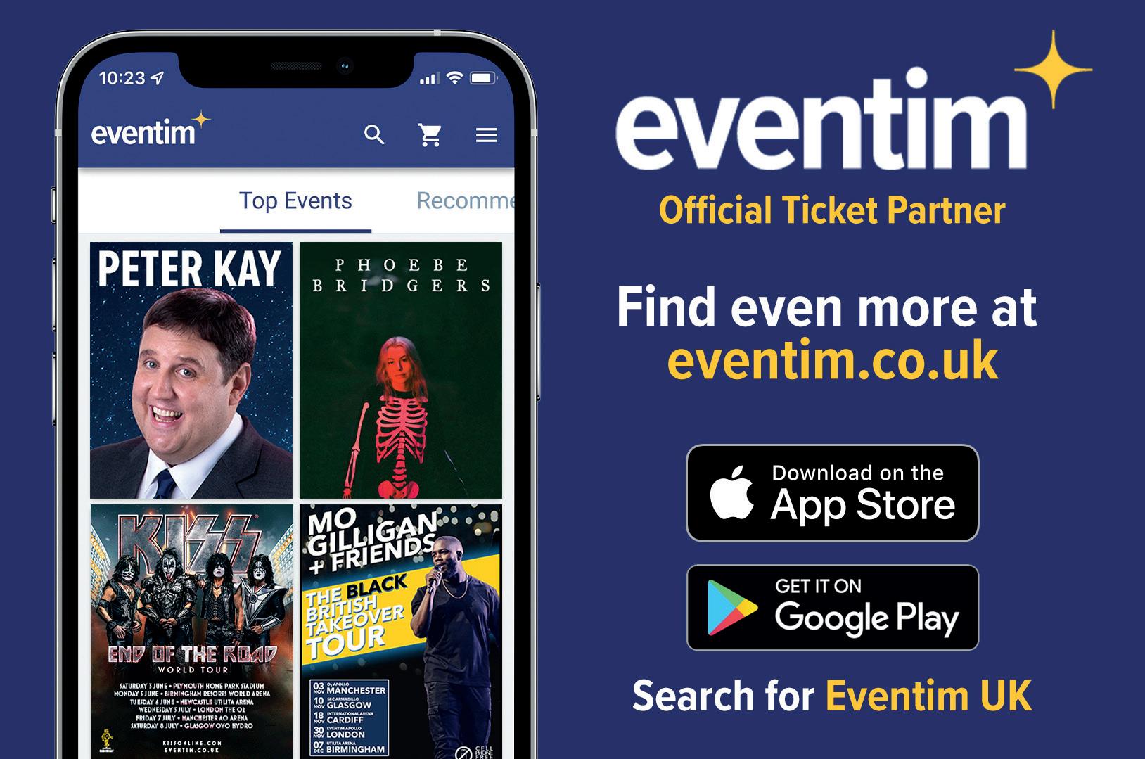 Tickets subject to booking fee & charges apply when booking online or over the phone via Eventim. No fees for booking at box o ce in person. Calls to the booking hotline will cost 7p per minute plus your telephone company’s access charge.