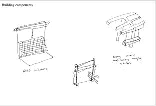 Technicality: The building’s grey water is collected and injected into a filter system. The filter comprises two tanks, one of biowaste and one of sand and stone, which promote bacterial activity to consume pollutants, purifying the water. Water can be collected from the roof when it rains through the gutters and stored in the water tank. The clean water is pumped through the building to the various growing mediums and sinks. The spent water leads back to the water digester, where it can be reused.