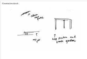 The greenhouse is characterized by its bare concrete construction, which reveals the traces of the demolished walls through its patchwork. A new roof of reused metal and polycarbonate is placed on the concrete structure. The facade has a few new doors opening up to the outdoor gardening. These openings are transformed to leave traces of the old facade by leaving brick walls. The space inside grows vegetables and plants.