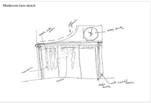 Mushroom farm: The program of the mushroom farm is placed in the new southern part of the building and the vertical farm. The first phases of mixing the mycelium and the incubation are happening here since this part is already insulated and dark. This benefits the growing process that needs to be dark and moist. The growing phase occurs in the vertical farm.