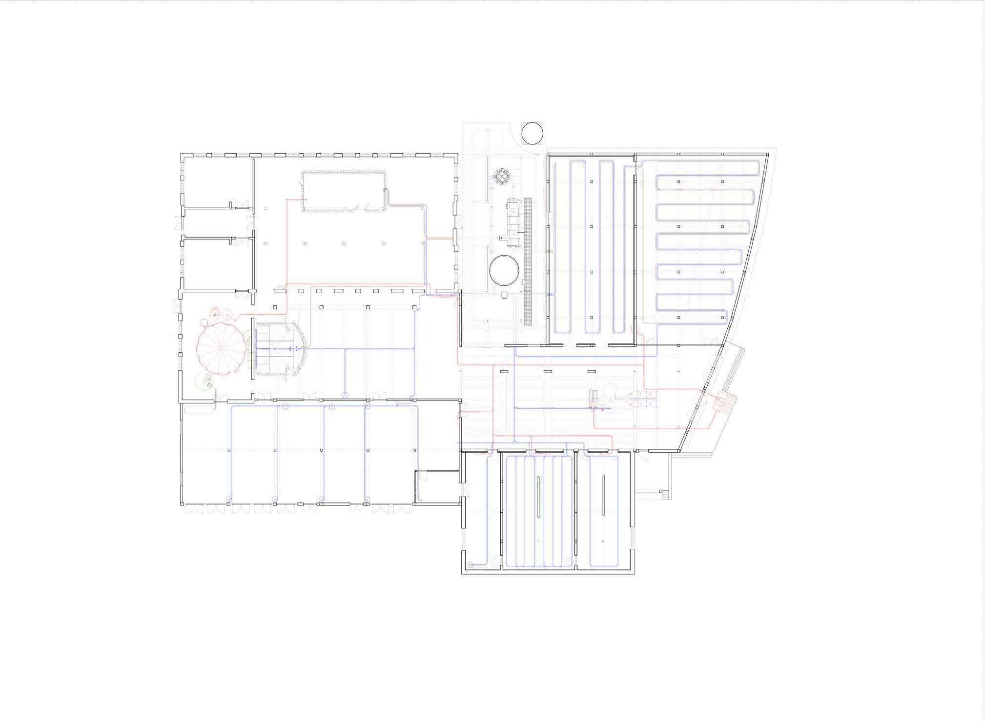 invisible metabolic relationships with more than human actors, like plants, bacteria, and fungi. The transformation restores the industrial legacy of the building and turns it inside out by inviting the public into the growing processes and the metabolic system, consequently blurring the distinction between technology and nature and production and leisure.