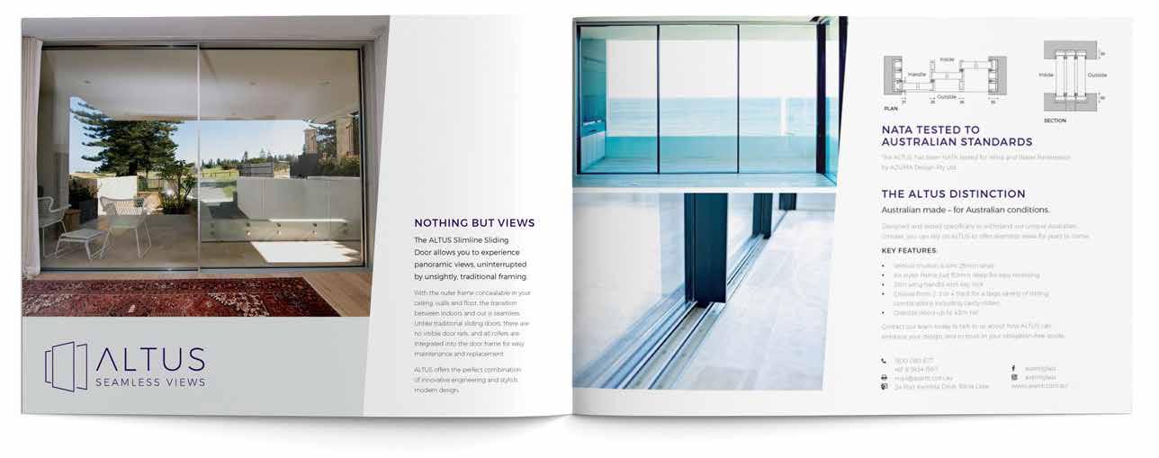 Also created was a stationery suite, a new responsive website, uniforms as well a logo and product brochure for their new premium seamless window product called Altus.