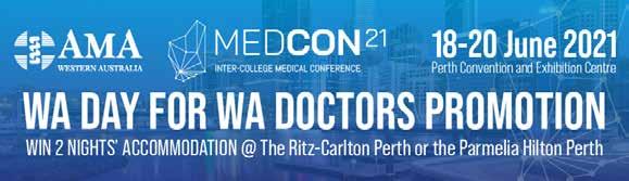 INTER-COLLEGE MEDICAL CONFERENCE MAJOR SUPPORTING PARTNERS WA Health Service Providers Your health’s best friend DIAMOND PLATINUM GOLD BRONZE It is with pleasure that welcome delegates, speakers, sponsors and exhibitors to MEDCON21. This conference was developed at a time of unprecedented travel restrictions, with the aim of doctors being able to experience world-class multi-disciplinary medical conference without leaving the State. MEDCON21 provides a unique opportunity for doctors to acquire much-needed CPD points from their own college or society, see what other specialties think is important right now, learn new skills and gain knowledge. Significantly, it gives medical professionals an opportunity to reconnect and be refreshed, whilst enjoying one another’s company. Whether you are attending a day session or the full conference, my hope is that the program developed will challenge you, inspire you and assist you in providing the highest standard of medical practice in your field. This conference program has been developed by your fellow doctors, with the assistance of many medical colleges and societies and over the next few days, you will have access to more than 80 sessions with over 150 speakers. also want to acknowledge all of our conference sponsors and exhibitors. Thank you for supporting this event and for bringing your expertise to MEDCON21. encourage all delegates to take the time to engage with each of the organisations involved. Finally, I’d like to thank each of you for attending this inaugural conference and for bringing your experience to this event. As medical professional, your work is incredibly valuable and as medical profession, the difference we make together has never been more important. We have continued to meet the challenges in health and to excel despite setbacks and for that we can all be incredibly proud and optimistic about where we are headed in the future. look forward to meeting with you and hearing from you at MEDCON21. This will be the first of many such opportunities the AMA (WA) can provide in cooperation with the full spectrum of our great profession. DR ANDREW MILLER President Australian Medical Association (WA) WELCOME IOS ANDROID CONFERENCE APP Download the Conference App by scanning the QR codes below or head to the app store and download The Event App by Events Air. Enter the Event Code: medcon21 and press submit. 1300 12 40 60 hello@hif.com.au hif.com.au CONFERENCE PROGRAM 18–20 JUNE 2021 Perth Convention and Exhibition Centre 14 MEDCON21 ____