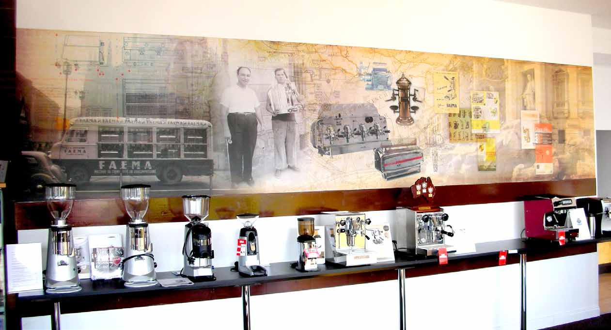 This design was a wall mural created for coffee distribution company Bonissimo. The client brought in many books of vintage coffee machines which were scanned. The design combines the historical images into a cohesive design that shows the rich heritage and history of the company.