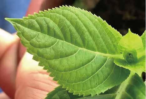 在最後做成圖樣時︐又在針對繡球花葉與香蘭葉的佈局進行 了微調︐稍微拉大兩者彼此間的空隙︐讓原本看起來東一塊