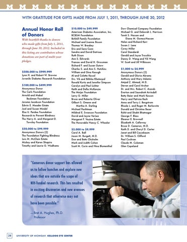 Anonymous Donors (2) The Foundation Fighting Blindness Lois M. McClain Estate Mickey and Karen Shapiro Timothy and Laurie G. Wadhams