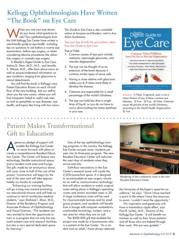 the University of Michigan’s quest for excellence,” he says. “Since I have reached a point in life where I have the resources to assist, I couldn’t resist the opportunity.” His inspiration and generosity will have a tremendous ripple effect, says Paul R. Lichter, M.D., Director of the Kellogg Eye Center. “It will benefit our trainees as well as their future patients and all those who are helped through their work. We are very grateful.” Advances in Ophthalmology Fall 2010 5