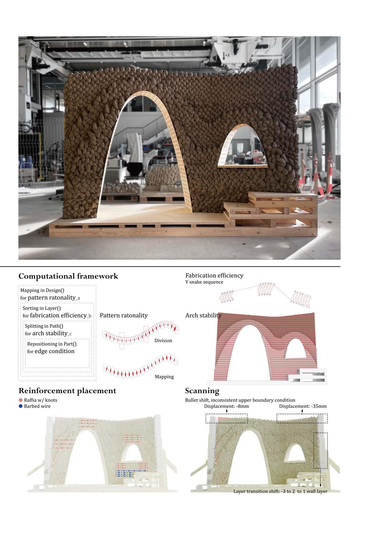 The inspiration for this research is drawn from Nubian vaults, which originate from the ancient civilisation of Nubia located in modern-day northern Sudan and southern Egypt. Nubian vaults are built by stacking rows of stones or bricks in inclined arches, assembling them with mortar and forming a self-supporting structure without traditional formwork. This building technique aligns with the layered extrusion 3DCP process.
