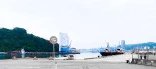 具有兩面性的基地,面山又面海,擁擠的市區人潮,到了基地範圍內,卻 是安靜無一物的現況,及中山路上的車流及靠港的水運形成對比。取此基 地的兩面性特性,希望在建築設計上,既能夠開放卻又封閉,面山、也面海, 既虛又實,來對應基地不同的面向及機能。