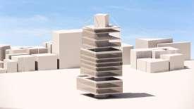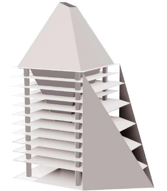 的結構 草模操作 及其意涵 然後進入基隆港基地 選擇以中央核心 Core 及懸吊系統的方式 並以不對稱的設計操作此大樓