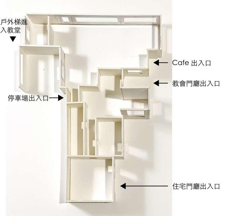 模型照片 北向立面開窗 希望底層具透空感 教堂有漂浮起來的感覺 東向立面 - 基地南側緊鄰一棟五層樓集合住