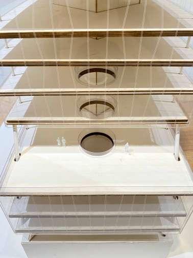軸線收尾在進入美術 館後,透過窗所見到 的水景作為結尾。