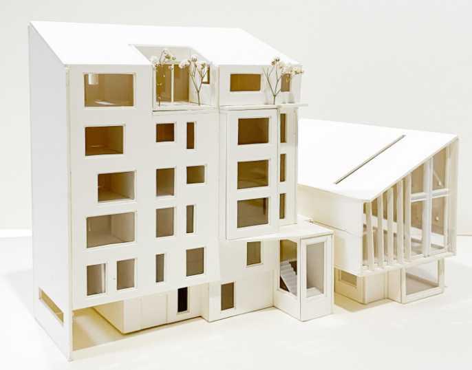 模型照片 北向立面開窗 希望底層具透空感 教堂有漂浮起來的感覺 東向立面 - 基地南側緊鄰一棟五層樓集合住