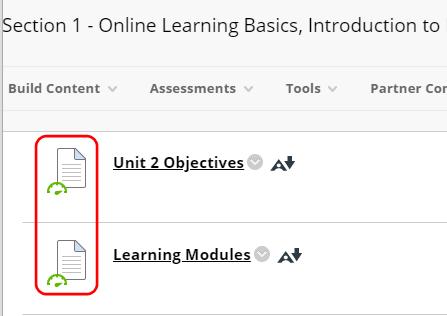 The indicators are only visible to instructors, course builders, and other roles that can build content. Students and guests cannot see them.
