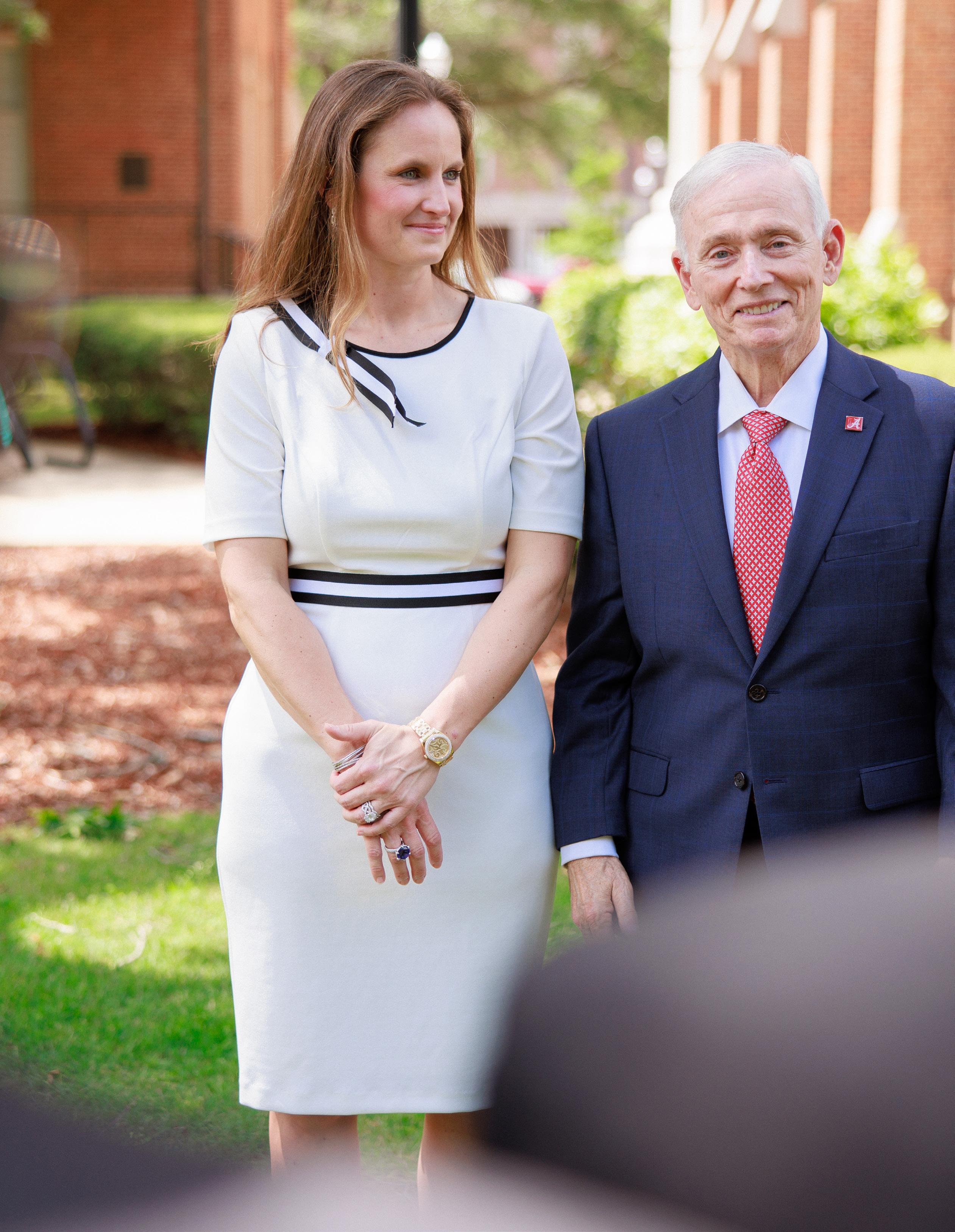 MichaelandRebeccaShanahanin frontofSabanFieldatBryant-Denny StadiumforRebeccaShanahan’sfirst Alabamafootballgamein2015.