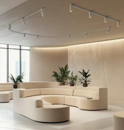The system offers multiple connection bases, various lengths of straight and two curved profiles, as well as the possibility to combine this system with many models from our general catalogue, either with integrated LED or bulbs. The use of Easy Link is designed for ceiling, wall and also for suspension.