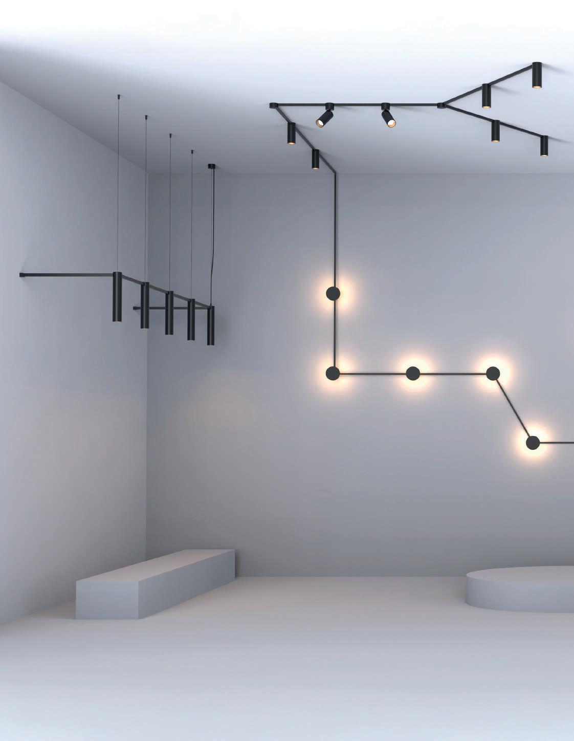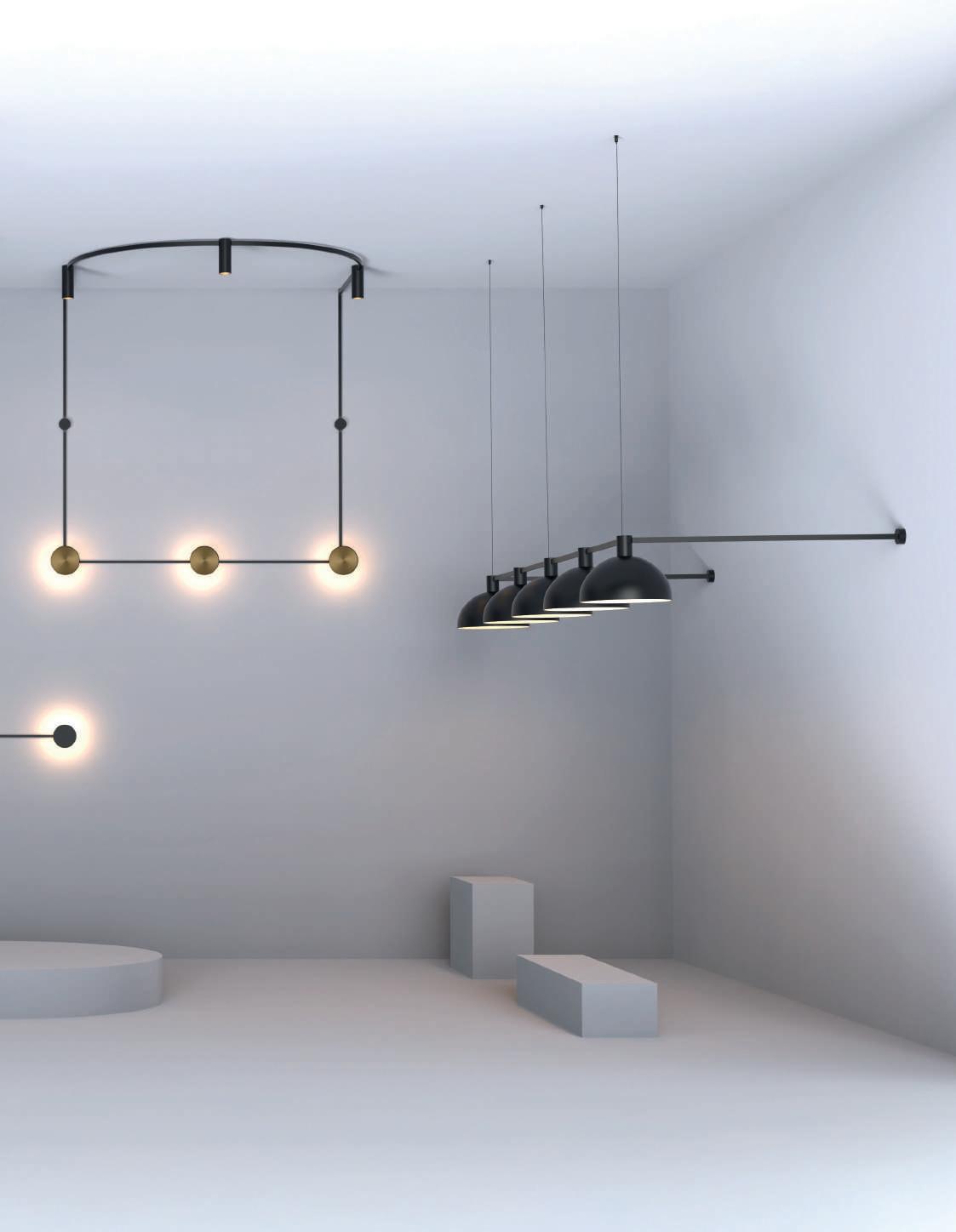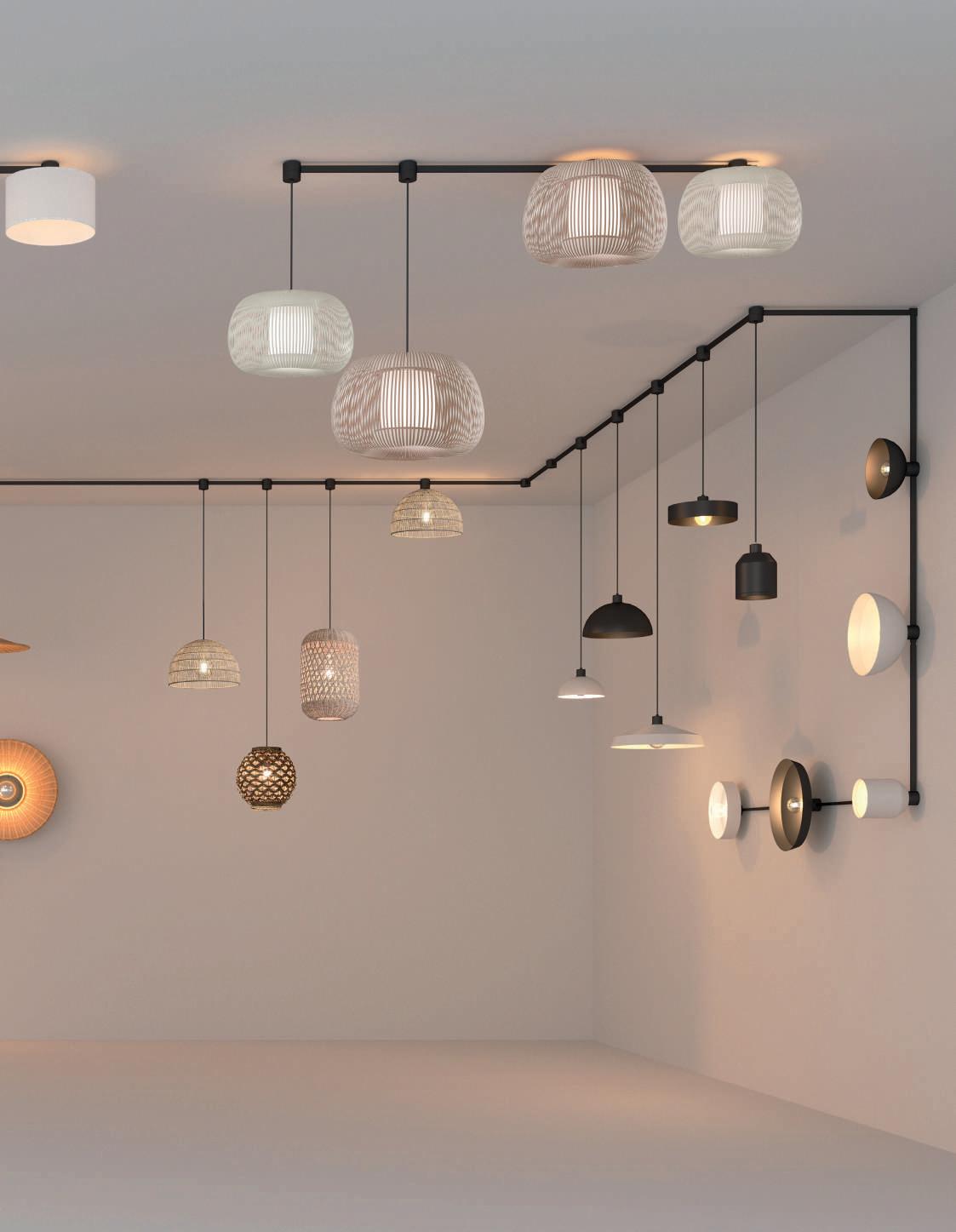Il sistema offre basi di connessione multiple, varie lunghezze di profili dritti e due curvi, oltre alla possibilità di combinare questo sistema con molti modelli del nostro catalogo generale, sia con LED integrati che con lampadine. L’utilizzo di Easy Link è previsto a soffitto, a parete e anche a sospensione.