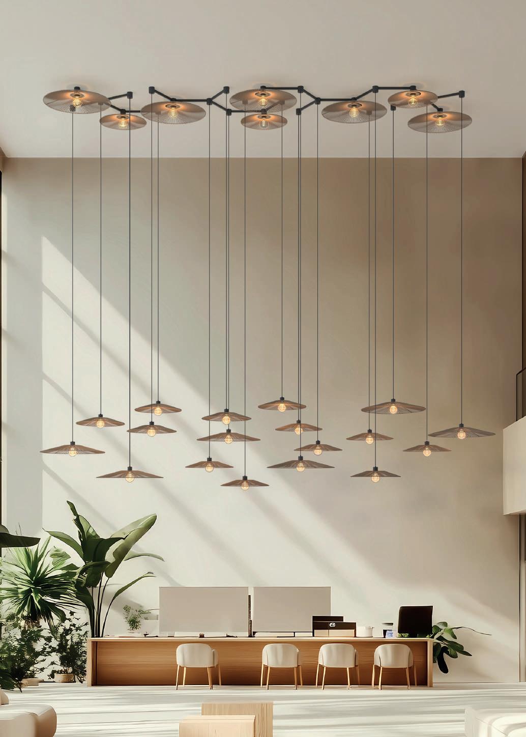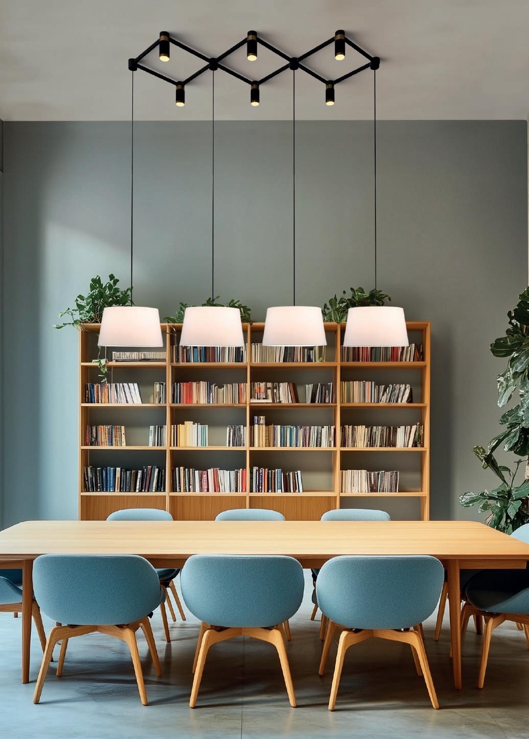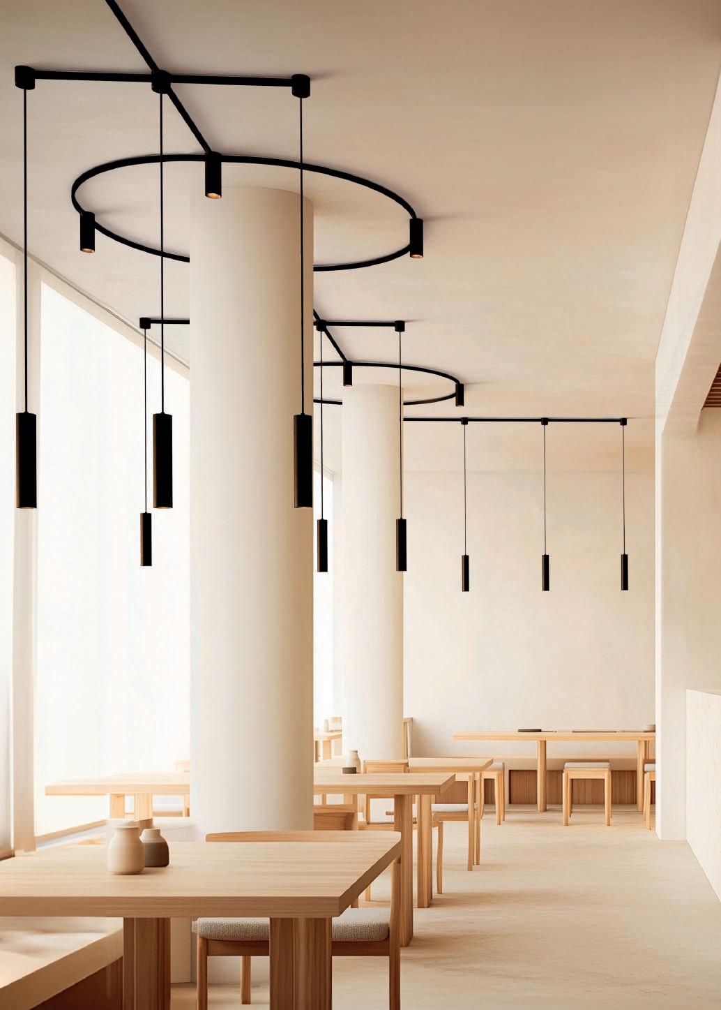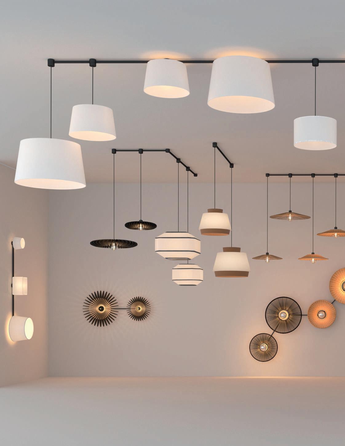 Il sistema offre basi di connessione multiple, varie lunghezze di profili dritti e due curvi, oltre alla possibilità di combinare questo sistema con molti modelli del nostro catalogo generale, sia con LED integrati che con lampadine. L’utilizzo di Easy Link è previsto a soffitto, a parete e anche a sospensione.